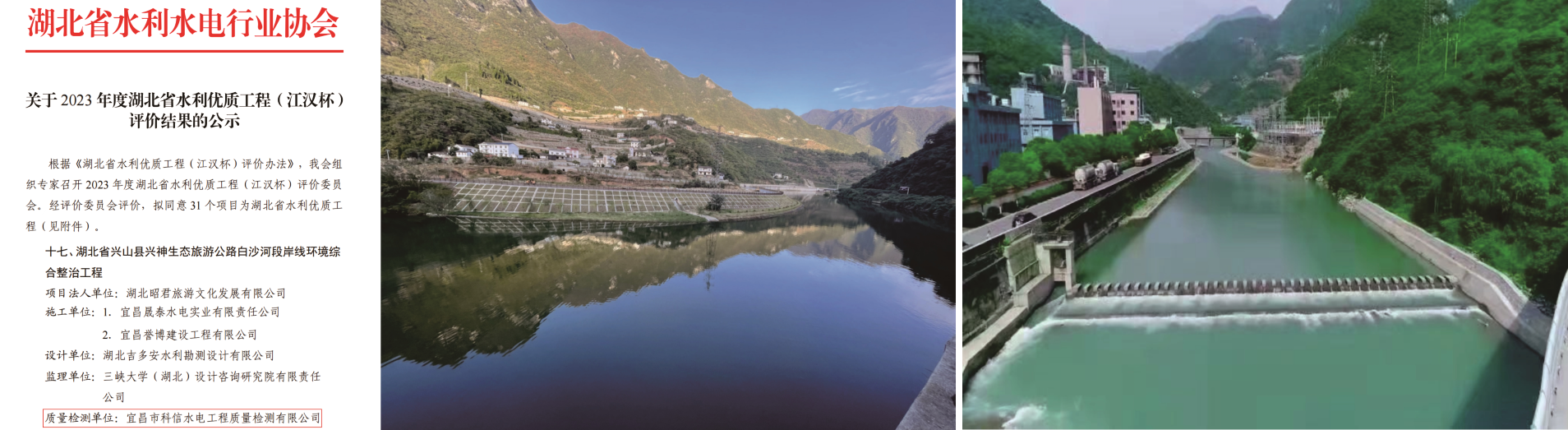 9月12日,湖北省 2023 年度水利優(yōu)質(zhì)工程 “江漢杯” 獲獎名單正式對外公布,這一備受行業(yè)關(guān)注的榜單牽動著眾多水利工程相關(guān)企業(yè)的心弦。令人振奮的是,由我公司承擔(dān)檢測任務(wù)的 “興山縣興神生態(tài)旅游公路白沙河段岸線環(huán)境綜合整治工程” 憑借出色的工程質(zhì)量成功入選,為公司的榮譽簿再添濃墨重彩的一筆。